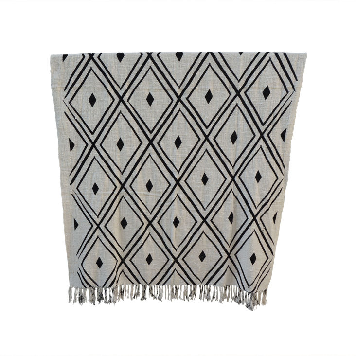 Baumwoll-Textilien. Diese werden je nachdem anschliessend nach ursprünglicher Siebdruck-Technik bedruckt oder mit der dip-dye Methode von Hand eingefärbt, was prachtvolle Farbverläufe kreiert und diesen schlichten, zeitgenössischen Stil ausmacht.
