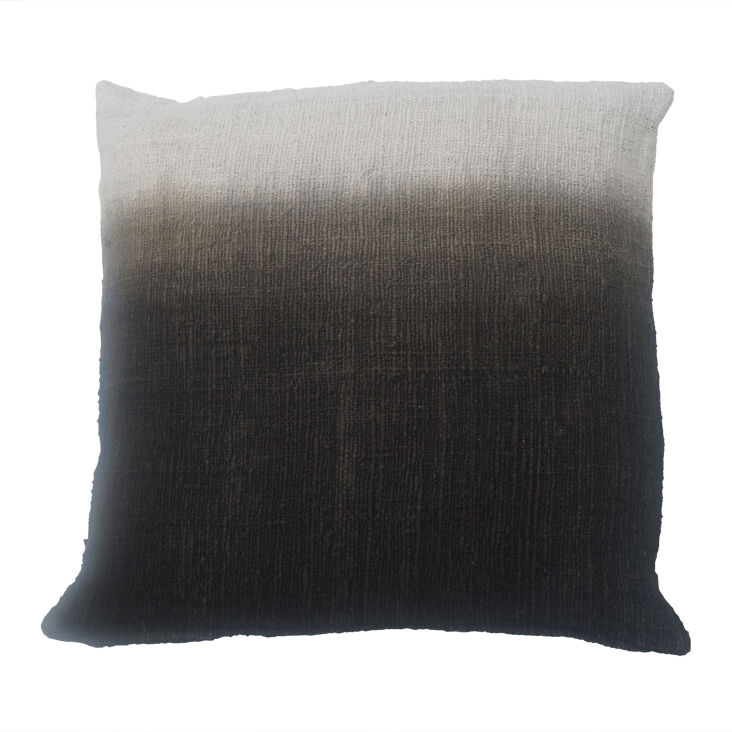 Baumwoll-Textilien. Diese werden je nachdem anschliessend nach ursprünglicher Siebdruck-Technik bedruckt oder mit der dip-dye Methode von Hand eingefärbt, was prachtvolle Farbverläufe kreiert und diesen schlichten, zeitgenössischen Stil ausmacht.